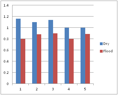 Figure 6 Average surface roughness (µm) of high chromium steel sample (y axis) Vs experiment run for optimum conditions (x-axis).