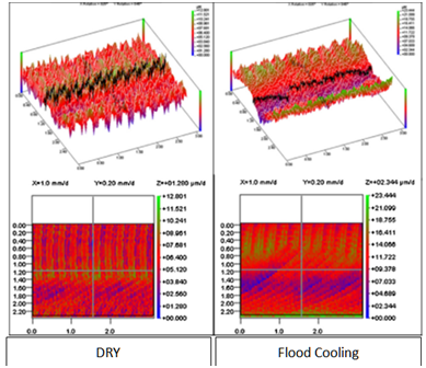 Figure 7 Optical scan of the machined surfaces of high chromium steel samples with/without flood cooling.