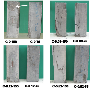The effect of fiber inclusion and fiber volume fraction was also observed on the failure mode of the tested columns, Figure 5. Columns with no fibers experienced spalling of the concrete cover and sudden failure and little vertical cracks.12 Columns with fibers showed more ductile failure mode as the fiber volume fraction increases and little or no cover spalling of the cover, besides numerous cracks development, as shown in Figure 5.
