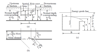 Figure 1 Sketch of side weir structure in subcritical flow condition.