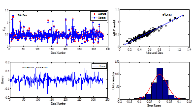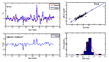 . In addition to calculation standard error indices, the error distribution for the all data which were used for training, validation, and testing was also plotted. To evaluate the error density the error histogram was plotted. As seems from the histogram the distribution of the error is normal and more concentrated around the zeros.