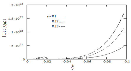 Figure 1–3 depicts the variation of determinant of Rayleigh wave secular equation, Rayleigh wave velocity and Attenuation coefficient w.r.t for different values of c. In all these figs. solid line, small dashes lines and big dashes line correspond to the value of respectively. From Figure 1, it is noticed that determinant of Rayleigh wave secular equation is equal to zero for the region ,then it slightly increases and decreases for the region, again becomes almost zero for the region