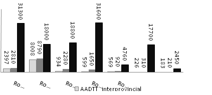 The Annual Average Daily Truck Traffic (AADTT) for interprovincial trade flow was estimated as 2397 for highway 1, 8008 for highway 2, 934 for highway 7, 599 for highway 15, 569 for highway 16, 226 for highway 102, and 183 for highway 104 (Figure 2). This reveals that the major impacts of the AADTT on these selected highways are contributed by truck flows for interprovincial trade among the selected five provinces (Figure 2).
