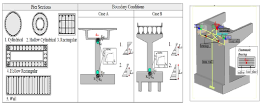 Figure 1 Critical bridge components-Pier types considered in the database and different boundary conditions.