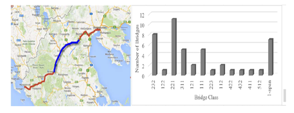 Figure 5 Software for bridge-specific fragility analysis: Step 3–Bearing and abutment input Application to bridge inventory (Egnatia Motorway). Different bridge classes in Egnatia Motorway, Western Macedonia section.