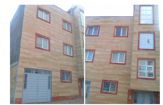 Figure 3 indicates an example of safe building located in Region 3 with a RC-frame. The building does not have any problem such as irregularity in plan or height. In addition, this building is built based on seismic codes and has a soil type C. The seismic vulnerability index for the mentioned building is 3.7 which implies the satisfactory safety of the building. The vulnerable buildings are located in all parts of the city specifically in region 12. The major issues associated with these buildings as indicated in Figures 4 & 5, are utilizing masonry material and problematic distribution of the mass leading to irregularities through the height of the buildings and causing premature fractures. The seismic reliability factor for these buildings located in region 12 of the city is approximately 0.2 which is considered low.