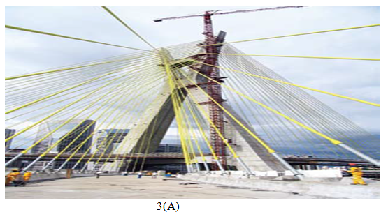 The pre stressing of the beams was performed over a period of several weeks on hundreds of cables until reaching the compression determined for each beam by injecting cement cream into each sheath surrounding the cables. Another steel example is the cable-stayed bridge “Octavio Frias de Oliveira” (also in São Paulo), inaugurated in 2008 (Figure 3A). The central support starts with 4high pillars with 12m each one, with variable rectangular section, being connected transversely by a ribbed slab and longitudinally by a pre stressed concrete platform composed of two beams and a slab.