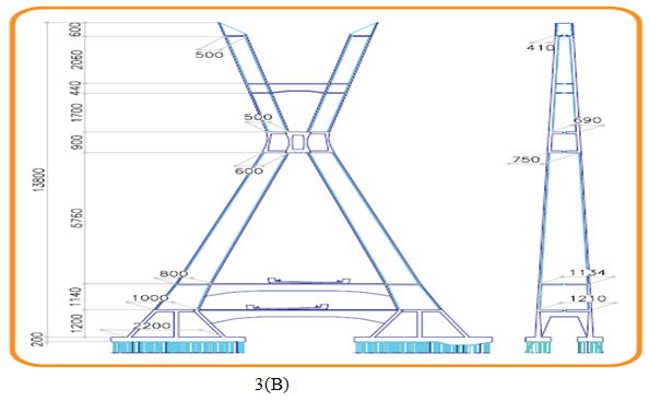 Figure 3 (A) “Octavio Frias de Oliveira” cable-stayed bridges. (B) Main dimensions of the central support.4