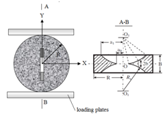 Comparisons between ISRM suggested methods have been mostly focused on SR and CB specimens3, or on CCNBD and CB specimens4. Although some consistency has been provided by these suggested methods, a variation of 20–30% was still obtained for the same rock type. Recent research has indicated that CCNBD values are markedly smaller than other comparable tests3,5,6. However, the consistency of tested mode I fracture toughness between CCNBD and SR specimens has not been validated adequately and needs to be compared after performing more experiments. The geometry of a CCNBD specimen is illustrated in Figure 1. The chevron notch causes crack propagation to start at the tip of the V alignment and to proceed radically outwards in a stable fashion until the point where the fracture toughness is calculated.