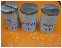 Six CCNBD samples were tested under load control test conditions. The specimens were placed under the platens with zero crack inclination angle (θ = 0°) to provide mode I loading conditions. The loading rate was chosen as 9kN/s to cause failure within 20s as suggested by ISRM7. The load and CMOD readings were recorded continuously until failure. The tuff SR specimens’ diameter and length were 52mm and 75mm respectively. The chevron angle, θ, was 55°, and the chevron tip position was at 25mm. Figure 5 shows the SR samples before testing. The end plates were mounted parallel to and equidistant from the notch center plane. Each specimen was placed in the testing machine in such a way that the load transfer system was properly aligned. A small bias load was used to secure it in the correct position. Level I presume that the test will be run under load control. The load was recorded and the test was run until the specimen failed. The average stress intensity rate during the test was 0.25 MPa√m/sec so that failure occurs within 10s of initial load application. Eight SR samples were tested and results are given in the following sections.