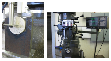 The tests were carried out on tuff specimens. A circular 40mm diamond saw was used to cut the required notch Figure 5. A precisely designed jig was used to ensure that the chevron notches are exactly in the center of thedisc. Additionally, the jig was controlled by an electronic alignment device with displacement calculated on x, y, z coordinates for accuracy in controlling the center alignment and penetration of the saw Figure 4. The thickness, t, of the notches was 1.4mm and the thickness of the sample, B, was 25mm. The initial chevron notch crack length, a0, was 7.5–8 mm and the final chevron notch crack length was 36–37mm. An Instron 6027 with 100 kN load cell hydraulic servo-control testing system with Blue hill software was used to conduct the tests. Diametral displacement parallel to the loading direction was measured by means of an extensometer with 50 mm gauge length. The crack displacement was measured as CMOD across the crack mouth. The opening of the notch was measured by a clip gauge by attaching special knives. Instron 2670 model crack opening displacement gauge was used to measure CMOD values.