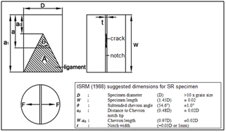 Keywords: fracture toughness of rocks, short rod test, CCNBD test, Rock fracture, crack coalescence, crack initiation, rock boring equipment, rock bursting, rock drilling forces, wellbore stability, geometric parameters, hard rock types, dimension notations, tuff SR specimens, self-pre crack