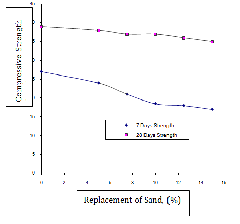 Figure 2 shows the effect of replacement level of sludge on the compressive strength of mortar specimens. It has been observed that the influence of the increasing sludge replacement level is much less on the 28 days compressive strength as compared to 7 days compressive strength.