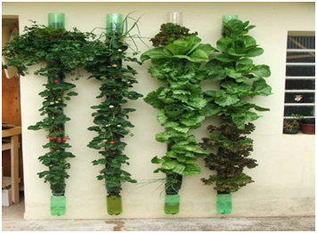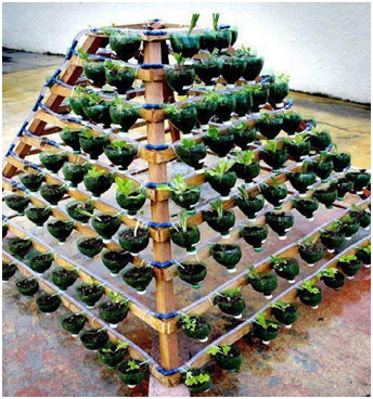 Plastic bottles can cause the green construction by saving energy and resources, recycling materials, minimizing the emission, having significant operational savings and increasing work place productivity. These 13 plastic bottle vertical garden ideas will interest you if you are a creative person, DIY lover and love to grow plants. This way you can use plastic bottles to make something amazing out of them. Repurpose those old bottles, which you usually throw away to grow your favorite plants either indoor or outdoor and help to save our environment (Figure 7). If you love DIY ideas and you have a green thumb then starting a window farm is a smart idea. A window farm will let you do a lot with the little amount of space you have. The indoor windowfarms (Figure 8). Fallows the crops to take full advantage of the light and vertical space available at the windows. Here in this PDF, you will find all the instructions on how to build a Window Farm. Follow this amazing idea for growing small leafy vegetables, such as lettuce, fenugreek and spinach, herbs and medicinal plants. This plastic bottle vertical garden is made of by stringing the bottles horizontally in a grid along an interior wall, which then filled up by substrate and herbs (Figure 9). A remarkable kitchen garden with plastic bottles with minimal means and efforts. It can be set up easily and does not require regular watering. Here is the tutorial with more images of it (Figure 10). Do you want to create a low maintenance vertical soda bottle garden? Follow this idea. All that is required is bottles cut in half, cactus plants or succulents, and many colorful threads to get a really cool decorative effect (Figure 11). Use two-liter soda bottles, cut them in half and use the neck side. Turn them upside down. Adhere the bottles to a wooden frame and arrange them in such a way so that the open neck of the bottle will drain out the water into the bottle below it (Figure 12). Here’s an another idea to create a vertical garden using the plastic bottles. It is a great way to reuse old plastic bottles and to introduce some greenery to a small urban space (Figure 13). One more wonderful idea to make use of plastic bottles, more useful if you don’t have much space on the ground (Figure 14). A hanging plastic bottle garden to make full use of vertical space. In this post, which we found on Source: Container Gardening (Figure 15). Plastic bottles are mounted on the wall for utilizing the vertical space. Bushy and trailing plants like lettuces and strawberries hide the structure, creating a nice ‘green wall’ effect (Figure 16). Another innovative and great looking plastic bottle vertical garden. Bottles are hanging horizontally, attached through the strings (Figures 17 & 18). Want to grow herbs but you don’t have space? Well, even a wooden plank is enough. All you need is some plastic bottles, hooks, nails and hammer and you’re all set to grow your own herbs. Be sure to check out our post on balcony herb garden ideas to find out more ideas like that (Figures 19 & 20).