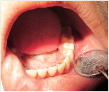 Today cemento-ossifying fibroma is widely accepted because both osseous and cemental tissues are seen commonly in a single lesion. The women are affected mostly when they reach their third and fourth decades of life, although in the present case the woman was 18years of age. The histopathology of juvenile ossifying fibroma often show psammomatoid pattern present as concentric lamellate and spherical ossicles in varying contour and characteristically have basophilic centers with peripheral eosinophilic osteoid rims.9 These features were not prominent in the present case. In general, the morphologic attributes distinguishing psammomatoid ossicles of juvenile ossifying fibroma from cemento-ossifying fibroma are: (1) characteristic emerging of basophilic turnaround cement lines, (2) an eosinophilic fibrillar peripheral rim, and (3) presence of matrix devoid of cells and without associated bone forming cells.9 The lesions are asymptomatic in most cases but may lead to facial asymmetry, root displacement and/or expansion of the cortical plates of jaws over time. Although the precise cause of the disease is unknown, literature mostly points to a history of trauma in the area of the lesion.12 In this case, upon repeated interrogation, we did not find any history of trauma on the affected jaw. Thus here in this case trauma may not be the possible triggering factor to develop the disease process. The treatment modality reported is all directed towards the removal of the mass or excision. Surgical enucleation and curettage is also a treatment of choice because of delimitation of the tumor.13
