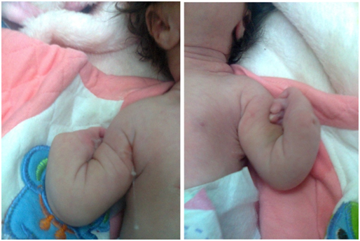 Conclusion: The extremely rare occurrence congenital absence of the radii without thumb aplasia without evidence of thrombocytopenia during the first week of life is reported in an Iraqi newborn.
