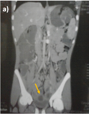 Thorough history taking was performed which revealed that before his recent diagnosis with intestinal lymphoma, the patient had a long history of intermittent diarrhea and this was since childhood as confirmed by his mother. He sought medical advice several times quinolones or metronidazole were prescribed to him but only with partial improvement of his condition, yet with no attempts of endoscopic intervention. Physical examination of the patient was unremarkable apart from bilateral cervical lymphadenopathy previously biopsied. Laboratory work up was done in the form of complete blood count, liver profile, renal profile, electrolytes, stool analysis & C&S (repeatedly), ESR, B2 microglobulins, virology (HIV, HBsAg, antiHCVab) and all were completely normal.
