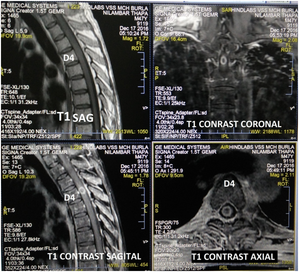 Citation: Bariha PK, Sahu AK, Kumar SR, et al. Intramedullary tuberculoma of spinal cord, in association with TB intestine and pleural effusion responded to antitubercular therapy: a case report. MOJ Clin Med Case Rep. 2019;9(1):17-19. DOI: 10.15406/mojcr.2019.09.00293