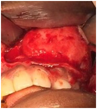 In our case, the lesion being larger and follow-up being longer, we could observe the corrected deformity and the bony cavity had healed optimally in the absence of any adjunctive therapy. The patient was referred for prosthodontist for dental rehabilitation and subsequent implant after patient exceed 18 years.