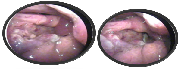 He was admitted in the intensive care unit and monitored for 24hours following which direct laryngoscopy was done under general anesthesia which revealed that the right pharyngo epiglottic fold was transected and supraglottic edema was present. He was conservatively managed with anti inflammatory and anti reflux medications. A video laryngoscopy done six weeks later showed a normal functioning vocal tract.