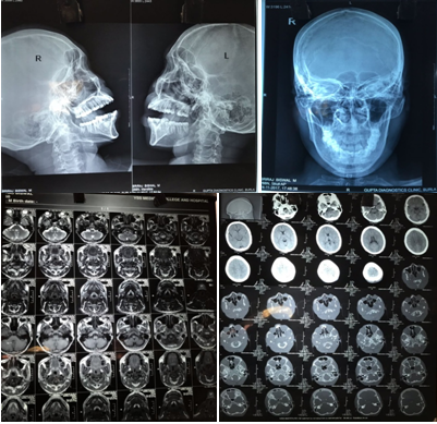 An 18years old male patient with known history of sickle cell disease admitted with complains of bilateral hip joint pain, left knee joint pain with subsequent feeling of numbness of chin and lower lip and decreased sensation of touch in lower incisors and canine teeth (Figure 1). There was no cervical lymphadenopathy and other visible neck mass. Oral examination revealed normal soft tissue and salivary glands. Clinical examination showed absence of pain, touch and temperature sensation over mucous membrane and cutaneous portion of the entire lower lip. Sensation of the upper lip, gingiva and teeth appeared to be intact. The neurologic examination of other parts was normal. There was no restricted range of motion around bilateral temporo-mandibular joint. Laboratory tests showed Hb-6.8 gm/dl, total leucocyte count-17300/mm3 ESR- 40mm. All radiological imaging like X-ray of mandible, CT scan of brain with base of skull, MRI of brain and skull were within normal limits (Figure 2). X-ray chest PA view was normal. Ultrasound of abdomen and pelvis showed hepatomegaly and splenic infarction.