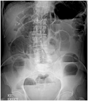 A 35year old female presented with features of acute intestinal obstruction with colicky abdominal pain, distension and bilious vomiting for last two days. She was having history of recurrent episodes of bilious vomiting and loss of appetite for past 3 months. She was also experiencing repeated episodes of colicky abdominal pain which used to be relieved after taking anti-spasmodic medications. She had no prior history of abdominal surgery. Clinical examination revealed dehydration, anicteric, afebrile, blood pressure of 110/60 mmHg, abdominal distention, hyper-peristaltic bowel sounds, abdominal hypertympanism, and tenderness in the hypogastrium, characterizing intestinal occlusion. The biochemical parameters were within normal limits. Abdominal radiograph in erect position revealed multiple air-fluid levels in step ladder pattern without any free gas (Figure 1). The patient was resuscitated for correction of fluid deficit and dyselectrolemia. As the patient was in acute intestinal obstruction for the last two days, so the patient was planned for emergency laparotomy without doing the contrast studies.