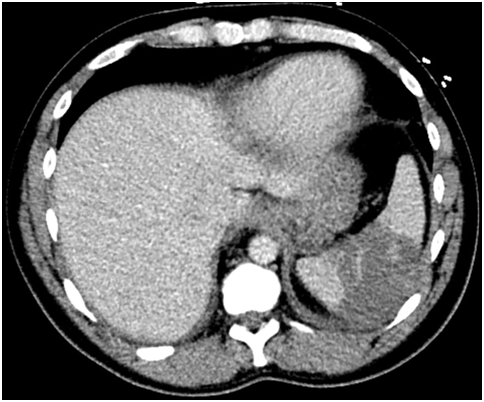 Citation: Akhrass FA, Abdallah L, Ammisetty K, et al. Splenic infarction in a man with active drug use. MOJ Clin Med Case Rep . 2017;6(6):143-145. DOI: 10.15406/mojcr.2017.06.00181