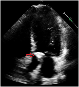 A 31-year-old Caucasian man presented to the hospital with 4day-history of left upper quadrant abdominal pain and left sided pleurisy. He had recently failed therapy for chronic HCV mono-infection, genotype 1a, with fibrosis score of F0. He admits to using intravenous recreational drugs. Vital signs were normal except for heart rate of 130/min. The abdomen was tender in the left upper abdominal quadrant with no of peritoneal irritation. Initial blood investigations revealed leukocytosis of 21.3x103/µl with normal renal function and liver enzymes. Computed tomography of the abdomen with IV contrast showed a large splenic infarct (Figure 1). He had no recent abdominal trauma or abdominal surgery. Streptococcus constellatus was cultivated from two sets of blood cultures on day three. Comprehensive workup excluded mononucleosis, pancreatic disorders, HIV, autoimmune/collagen vascular disease, sickle hemoglobinopathies, malignant hematologic disorders (normal peripheral blood smear, SPEP and flow cytometry), hepercoagulable state (normal protein C or protein S; normal lupus anticoagulant, factor V, prothrombin). Patient had no signs of ARDS, sepsis, septic shock or toxic shock syndrome. Patient no recent cardiac catheterization (angiographic embolization), sclerotherapy of esophageal varices, abdominal surgery (pancreatectomy, or liver transplant), vasopressin infusion, or embolization for splenic hemorrhage. Echocardiogram showed the presence of 2.5x1.5cm2 vegetation of the aortic valve with perforation, severe regurgitation and aortic root abscess (Figure 2). Magnetic resonance imaging (MRI) of the brain showed numerous brain abscesses, without mass effect or midline shift. This case was complex and Duke’s criteria were used to make the diagnosis of IE. The patient received aortic valve replacement and his post-operative course was uneventful. Administration of ertapenem was continued for 8 weeks. The patient had full neurological recovery and repeat MRI of the brain showed complete resolution of the abscesses. Follow-up echocardiogram showed no thrombosis or vegetation of the bioprosthetic valve.