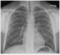 He was kept on supplementary oxygen, started on intravenous morphine for analgesia, intravenous normal saline and kept fasted. An initial portable chest x-ray was normal as shown in Figure 1.