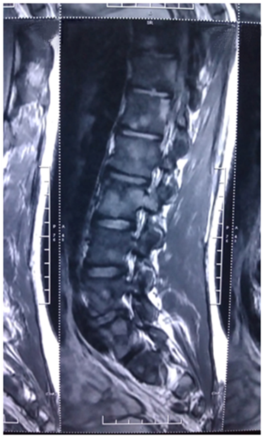 Patient’s complete blood count and peripheral smear was normal. The results of urine culture, blood culture and serology of viruses including EBV, CMV, hepatitis B, C and HIV were negative. Erythrocyte sedimentation rate: 68mm/h, C-reactive protein: 24mg/L (normal<5). HLAB27 was negative and mantaux was 14mm. Blood TB PCR, TB quantiferon Gold test and serology for Brucella was negative. X rays of the spine, pelvis and sacro-iliac joints were normal. Ophthalmological and skin examination was normal. MRI of the Sacro-iliac joint revealed diffuse patchy marrow edema in the bilateral sacro-iliac joints (Figure 1) involving bilateral sacral ala and juxta articular iliac bones and associated with diffuse patchy marrow edema in the vertebral bodies from thoracic to sacrum vertebrae. There was mild reduction of joint space in the bilateral sacro-iliac joint inferiorly with erosive changes in the articular surface of iliac aspect of right sacro-iliacjoint. MRI of whole spine revealed diffuse patchy marrow edema in the vertebral bodies (Figure 2). Bone marrow examination was essentially normal.