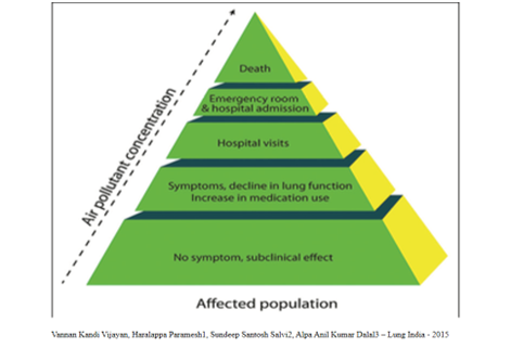 The air pollution pyramid can depict the progress of ill effects from silent airway obstructions without symptoms to hospital visits, to emergency visits, to hospitalizations, and death3 (Tables 2–4).