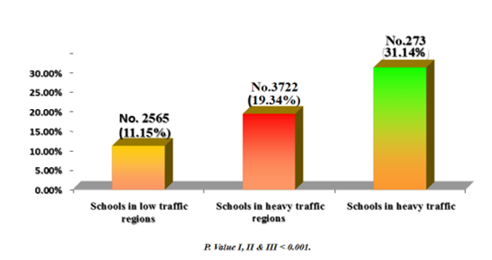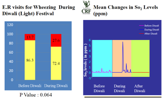 Children from heavy traffic area school suffer more asthma and it further increase in low socioeconomic children.9 Urban children suffer more in asthma than rural children as shown in Figure 2.9 Emergency room visit from asthma increased by 100% during Diwali festival where bursting of crackers happen by increasing the air pollution by sulphur-di-oxide as shown in Figure 3.10