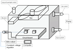 Optimised sensing material (GO) was made into a paste by mixing 0.1g with an appropriate organic binder. Then, this mixture was spread on Al2O3 substrate (4.0mm×2.5mm) with interdigitated comb-like gold electrodes and calcined in air at 300oC. The temperature of the sensor device was controlled at 25±3oC, and the relative humidity was 60±15 RH%. The sensor system comprises an HCHO sensing chamber and associated with a static system was set up in Figure 1A. Based on the calculation of ideal gas equation, the concentration of HCHO gas can be determined by injection appropriate amount of liquid HCHO solution in liquid sample inlet. A heater was used to heat the HCHO sample into vapour and the vapour mixed in the system by a fan. The system can create a set of concentrations in the range of 10 to 50ppm. The sensor response (S) was defined as S=RHCHO/RAir and the temperature of the sensor device was controlled at 25±3oC. Sensor signals from the sensor head were converted to resistance using a simple circuit in circuit board via a computer for data acquisition and processing.