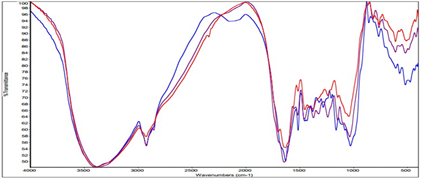 The purpose of preparing TBT is to achieve value additive synergistic pharmacologic response; however achievement of the same should not compromise with the original quality of black tea and for that purpose the chemical compatibility of turmeric with black tea have been studied by FTIR. Individual spectrum of aqueous extracts of black tea, turmeric and turmeric black tea were recorded in FTIR so as to observe any changes in the spectrum pattern of the black tea due to incorporation of turmeric and thus identify the chances of any chemical interactions.