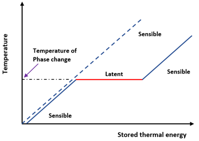 There are three basic and distinct modes of heat transfer used for storing thermal energy; the sensible heat, the latent heat or the thermo chemical energy.5 The sensible component accounts for the translational, rotational and vibration motions of the atoms and molecules. The latent component is the consequences of the intermolecular forces of the material that influence the phase change between solid, liquid and gaseous states. The chemical component accounts for the energy stored in the chemical bonds between atoms.6
