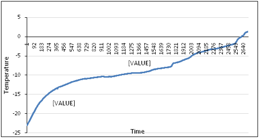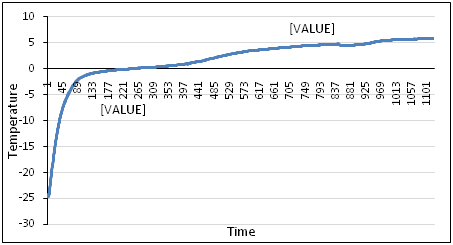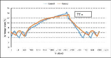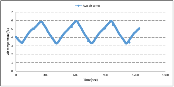 Test conducted for electrical power failure for 30 minutes. The graph plotted between air temperature and time is given in Figure 17: From Figure 17 it is observed that on power failure of 30 minutes the temperature rises to 14 °C. The use of PCM maintained the air temperature 1 °C lower than that of without PCM.