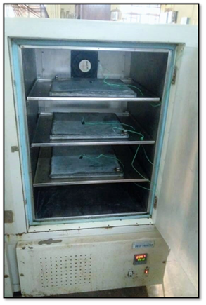 For the application of PCM to improve thermal stability during power loss in cold store, a model cold cabin having storage space dimensions 0.61 m × 0.60 m × 0.83 m and a storage volume of 303.78 litre was used. The boundary condition for load calculations was taken as 45 °C outside ambient temperature and 70% RH. The temperature and relative humidity that should be maintained inside the storage space was 4 °C and 95% respectively. Thickness of wall was 9 cm containing 3.5 cm thick sheet of stainless steel, 5 cm thick insulation of PUF and 0.5 cm mild steel plate. The door was 6 cm thick containing 0.5 cm thick stainless steel sheet, 5 cm thick PUF insulation and 0.5 cm thick mild steel plate. In-between door and storage space there was a rubber seal of thickness 1.5 cm which helped to provide leakage.