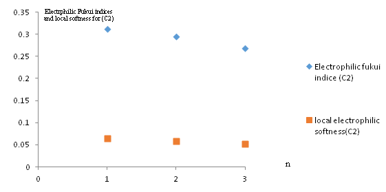 Figure 15 Variation of electrophilic Fukui indices and local softness for (C2) as a function of ring size for the norsarkomycin and its analogues.