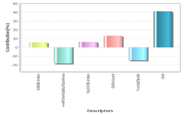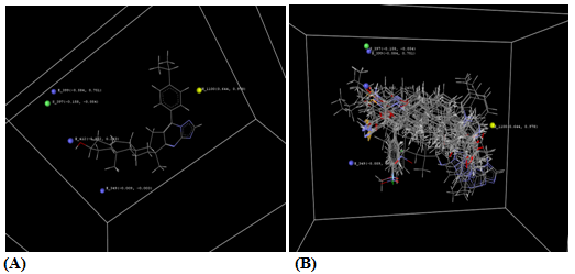 Figure 8 Contribution plot of steric and electrostatic field of interactions 3D view of aligned molecules. 3D view of active molecule (3D‒QSAR) by kNN‒MFA model.