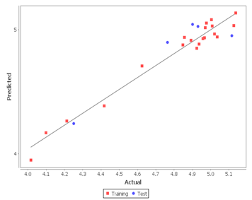 Figure 5 Radar plot showing overlapping of actual activity of training and test set molecules by PLS method. Radar plot showing overlapping of predicted activity of training and test set molecules by PLS method.