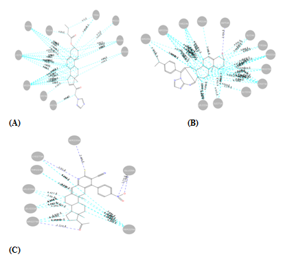 Figure 9 2D representation showing the interaction of the compounds 1b, 3 and 5g with active amino residues of 5β‒reductase receptor respectively.