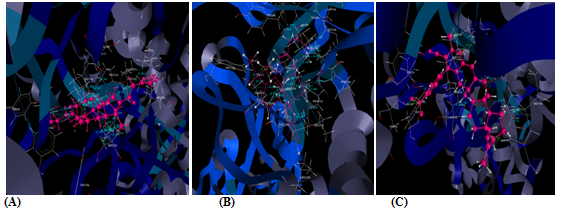 Figure 10 3D representation showing the interaction of the compounds 1b, 3 and 5gwith active amino residues of 5β‒reductase receptor respectively.