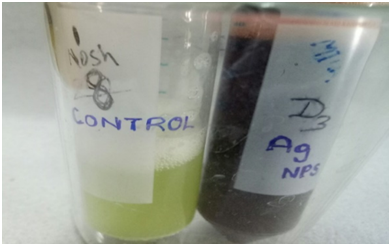 Leaves of Ziziphus nummularia were collected from the forest area of Sri Venkateswara University, Tirupati, Chittoor District of Andhra Pradesh, India. After collection, leaves were cleaned with distilled water and crushed with motor and pestle. Then five grams of the crushed leaves was taken in conical flask and soaked in 100mL of distilled water. Then the soaked leaves were boiled for fifteen minutes with constant stirring and then filtered through a filter paper (Whatman 1) to get the leaves extract and were stored in the refrigerator till further use. The leaf sample was added separately to the reaction vessel containing silver nitrate (AgNO3) at a concentration 0.1mM and control (without silver nitrate). And observed the color changes from color less to brown color is an indication of formation of silver nano particles in test samples and the sample was analyzed with various sophisticated instruments for presence of silver nano particles.