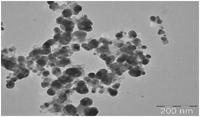 Size and shape of silver nano particles were confirmed by transmission electron microscope (TEM). For this plant leaf extract sample was dehydrated using a graded series of acetone. Ultrathin sections were made with microtome and mounted on copper grids. The sections were stained with 2% aqueous uranyl acetate for 10min and triple lead stain for 5min. Micrographs were taken with HITACHI 7500 transmission electron microscope operated at 100kV.