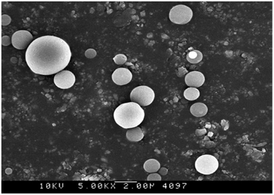 A suitable saturated salt solution was prepared to create the storage conditions for the stability test. Sufficient amount of analytic reagent grade sodium chloride salt was placed in a vessel was added with 1100 mL of water to prepare a thick slurry. The vessel was then placed in a desiccator which was placed in an oven at 42ºC. Accelerated storage conditions were maintained at 42°C and 75% use full form for 6 months. Accelerated condition is a condition designed to increase the rate of chemical degradation or physical change of a drug substance or drug product by using exaggerated storage conditions as part of the formal stability studies. Data from these studies, in addition to long-term stability studies, can be used to assess long-term chemical effects at non-accelerated conditions and to evaluate the effect of short term excursions outside the label storage conditions. The stability of the microsphere was determined six months after applying the gamma-irradiation.
