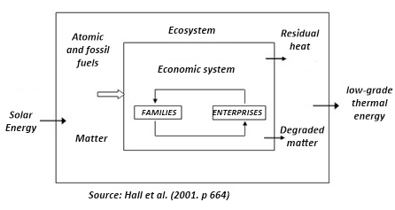 The environment is the origin of all the resources used by man. It is a system formed by interrelated natural and artificial elements that can be modified by human action. It is about the context that conditions the life of society and that includes natural, social and cultural values that exist in a specific place and time. The inclusion of the environment in the economic analysis allows us to move from a closed system of production (Figure 1 & 2). From the formal point of view, the transition to a system like the one described in (b) cannot be fully captured with the only incorporation of natural capital to the model, as proposed by Solow [2].