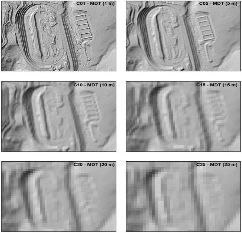 In terms of compatible cartographic quality for the application of the research developed in this scientific and practical work in the field of Mining Engineering and Mineral Extraction, the DTMs tested reached the quality standards established in the CAS-DCP (PEC-PCD), compatible with scales from 1:2,000 to 1:10,000, with maximum errors varying between 0.75 and 2.5 meters, considering the statistical margin of gross error (three times the standard error).