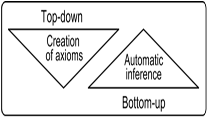 Figure 1 Top-down – bottom-up scheme of the white-box modelling. The first step is a deductive top-down creation of axioms and the second one is a cellular automata automatic inference that realizes a bottom-up approach.