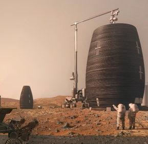 AI Space Factory has won the MARSHA project competition. They were able to construct a model of it. They built a model just by using 3D-printing technology. They used their own material as a “Martian polymer”. The material which is biopolymer is made from organic materials on the soil of Mars. It proved itself to be a super-strong building material, that is easily available on land and a more sustainable alternative to concrete and steel, which generates 9% of global carbon emissions.3 It is much more efficient to use a biopolymer rather than concrete because it does not need water in construction. It becomes a desirable feature where the water is so scarce. This product has the benefit of being recyclable as well, it can be repressed after demolition. We need to recycle as much as we can when we are living in an extraterrestrial environment. 3D printing allows recycling materials such as discarded waste, regolith on the planet’s surface, human waste, etc. and build habitats.