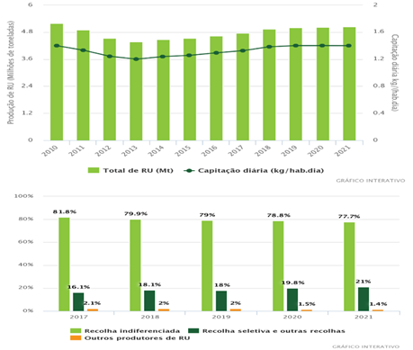 ** Waste data: Brazil – SNIS (2019) and ABRELPE (2021); Portugal: ERSAR, 2020 (Annual Report on Water and Waste Services in Portugal – Vol 1. ERSAR), RARU/APA (Annual Report on Urban Waste 2021).
